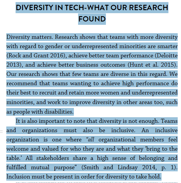 Pourtant, le livre mentionne très clairement que la diversité des équipes améliore leur performance. L’ouvrage cite plusieurs études démontrant que les équipes diversifiées, notamment en termes de genre et de représentation des minorités, sont plus “intelligentes”, obtiennent de meilleures performances et génèrent de meilleurs résultats commerciaux.