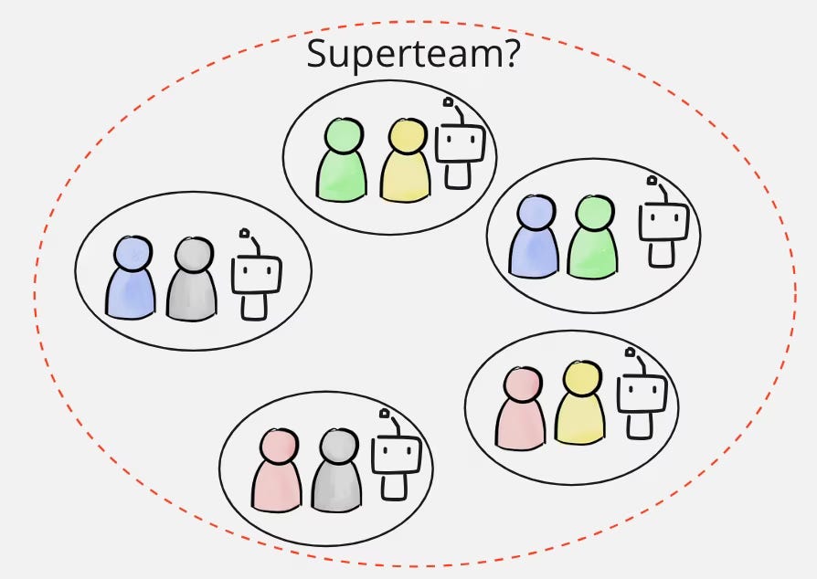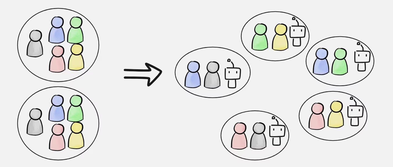 Une conséquence des équipes renforcées par l’IA est que nous aurons probablement des équipes plus petites, et plus nombreuses.