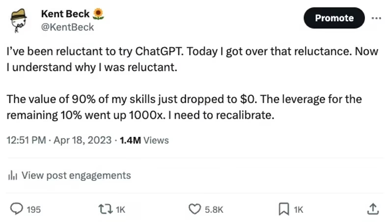 Alors, que se passe-t-il réellement lorsque la taille de l’équipe se réduit à 2 personnes ? Licencie-t-on tous les autres membres de l’équipe ? Non, je pense que les entreprises intelligentes vont doter tout le monde de pouvoirs IA, au lieu de n’en doter que quelques-uns et de licencier les autres. Licencier un grand nombre de personnes pour cette raison risque de créer une culture de peur et un manque d’innovation – les gens ne seront pas incités à explorer davantage cette technologie, puisque l’efficacité accrue signifie plus de licenciements.