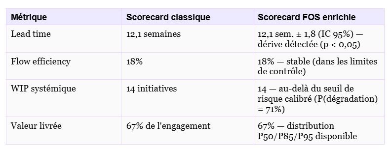 Ce n’est pas un détail technique. C’est un changement épistémologique. Un système complexe (et une organisation est un système complexe) ne se comporte pas de façon déterministe. Il se comporte de façon probabiliste. Ses métriques sont des distributions, pas des points. Ses tendances sont des signaux à qualifier, pas des faits à constater.