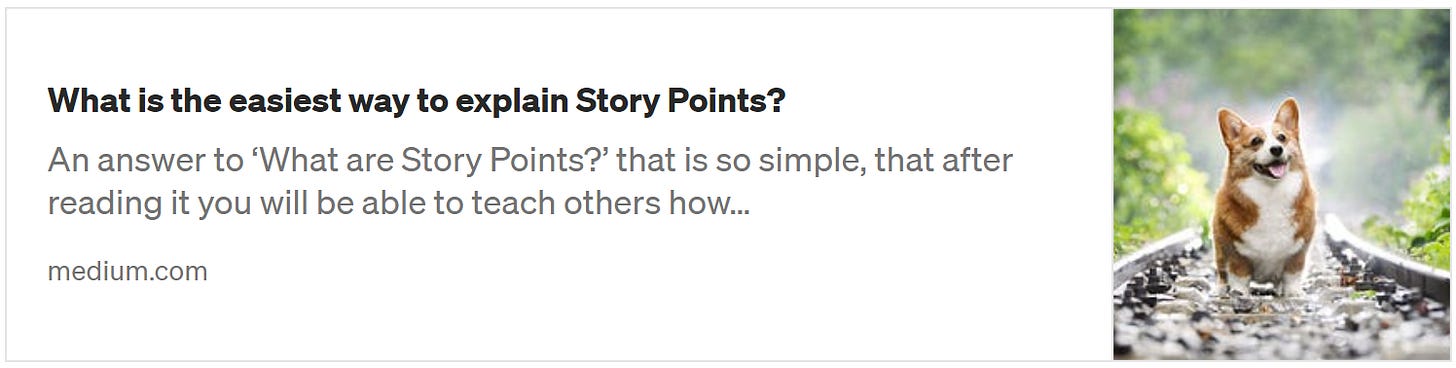 Une incompréhension de ce fait simple a conduit à beaucoup de négativité envers les story points. Une simple recherche illustre cela : https://medium.com/search?q=story+point. C’est assez malheureux car comme je l’ai dit, si utilisés correctement, les story points peuvent être un outil précieux.